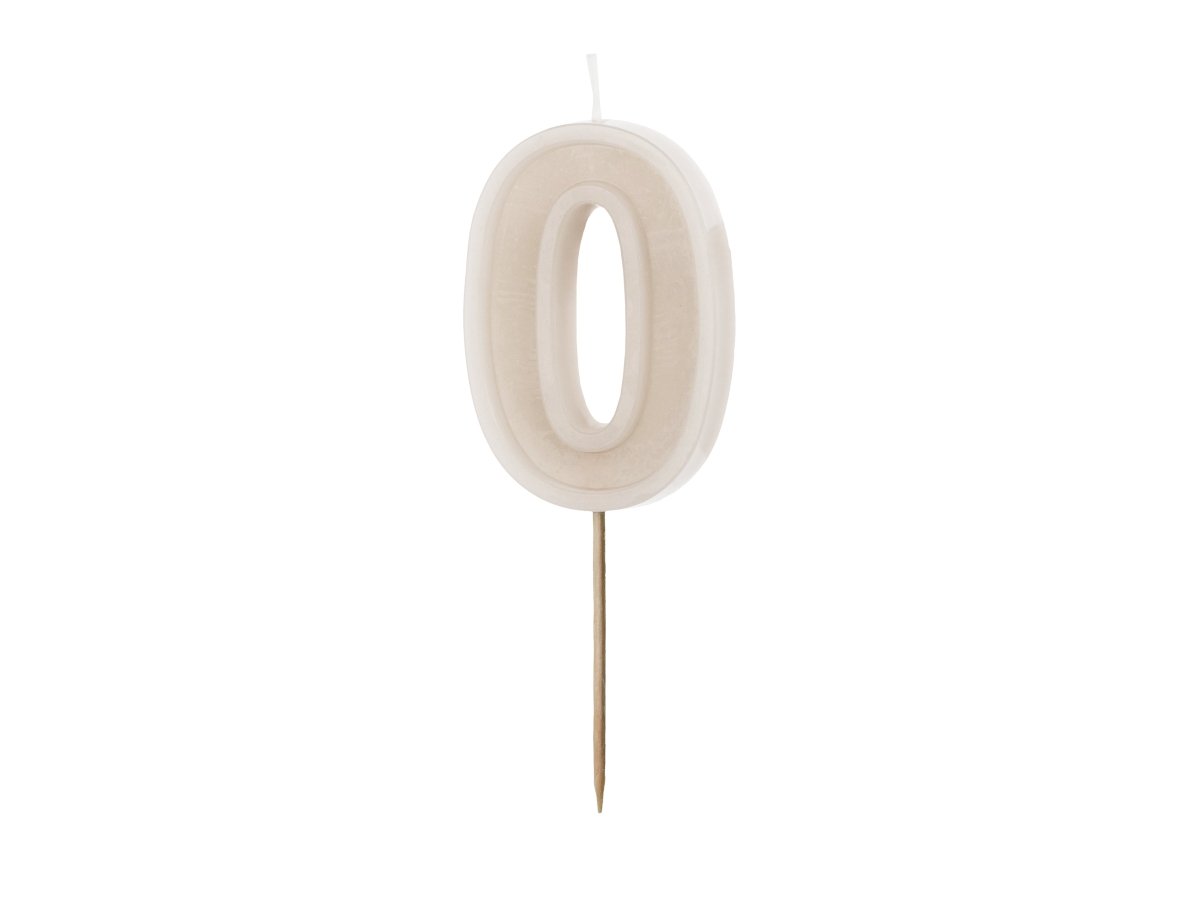 Vela de cumpleaños Figura 0 en color beige, Altura de la vela aprox. 6 cm, altura de la vela con palo aprox. 10 cm.