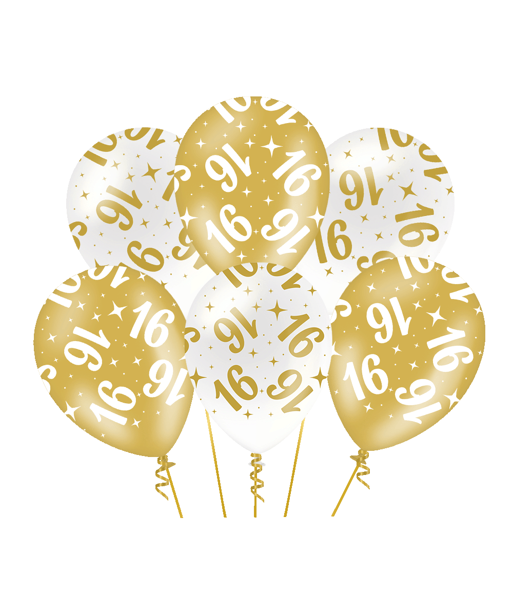 Globos 16 Años Oro Blanco 30cm 6pcs