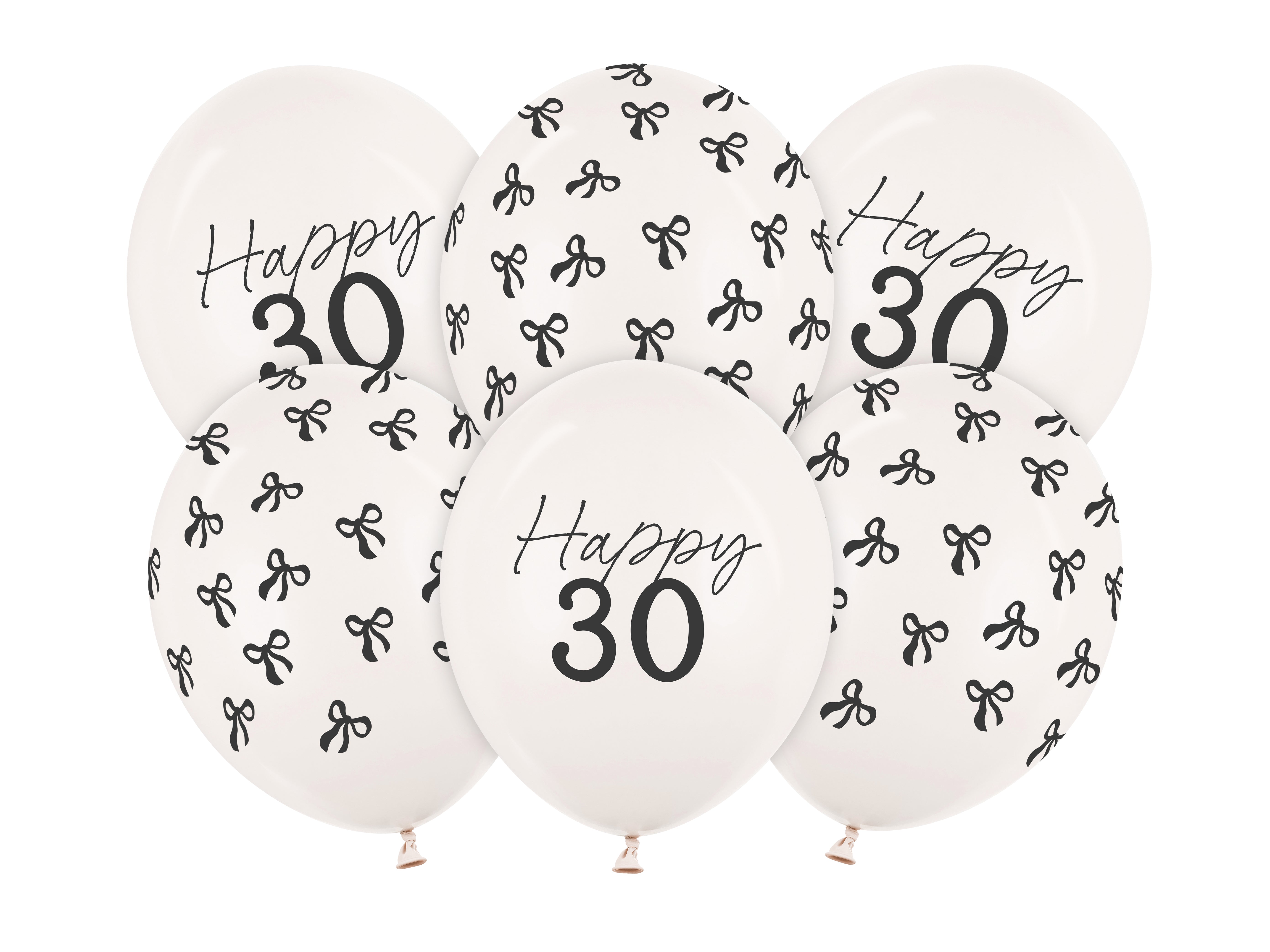 30 Años Globos Negro Blanco Lazo 30cm 6pcs