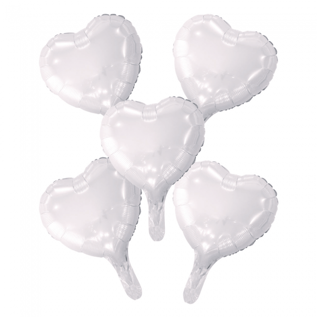 5 Globos de foil corazón con pajita de papel 9" blanco