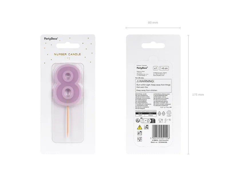 Contenido del paquete: vela de cumpleaños número 8