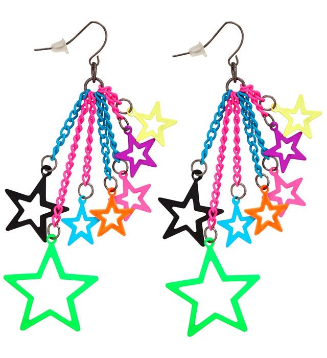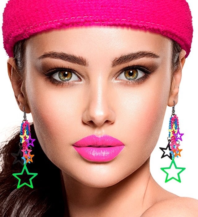 Completa tu look retro con estos coloridos pendientes con forma de estrella de los 80. Perfectos para fiestas temáticas, fiestas de disfraces o un atuendo nostálgico de los 80.