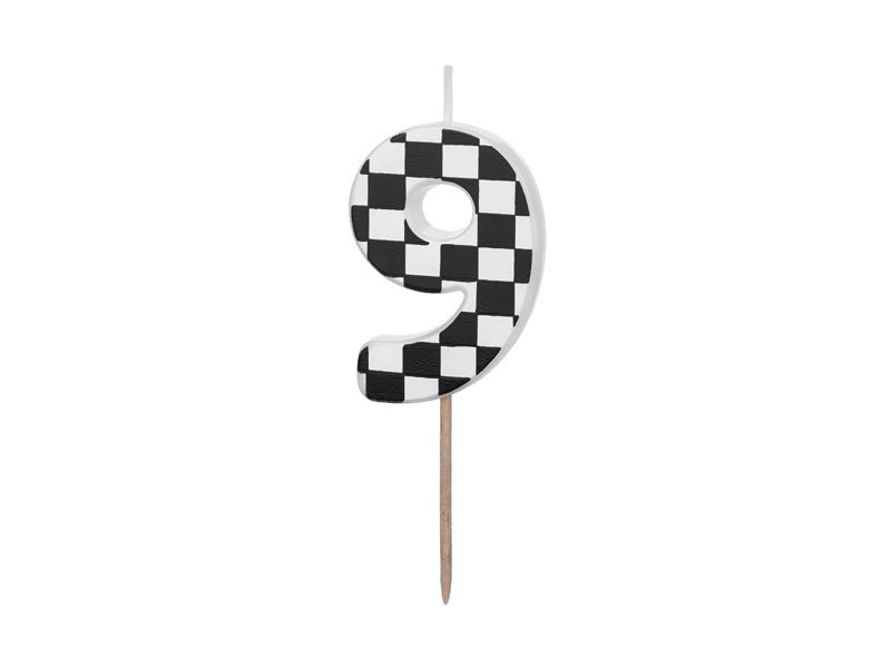 Vela de cumpleaños Número 9 con motivo de bandera a cuadros, tamaño aprox. 5,5 cm, mezcla