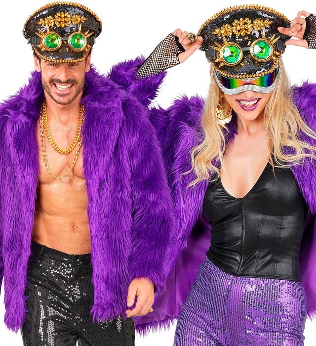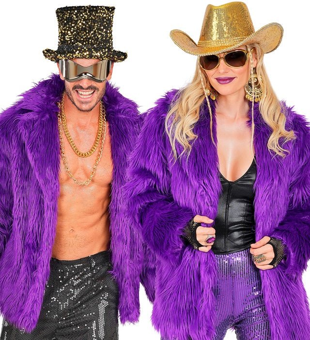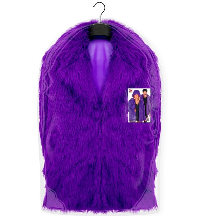 Este abrigo de piel de felpa en morado es un elegante y llamativo reclamo para un look festivo. Perfecto para Carnaval, fiestas temáticas, fiestas de los 80/90 o una fiesta equivocada.