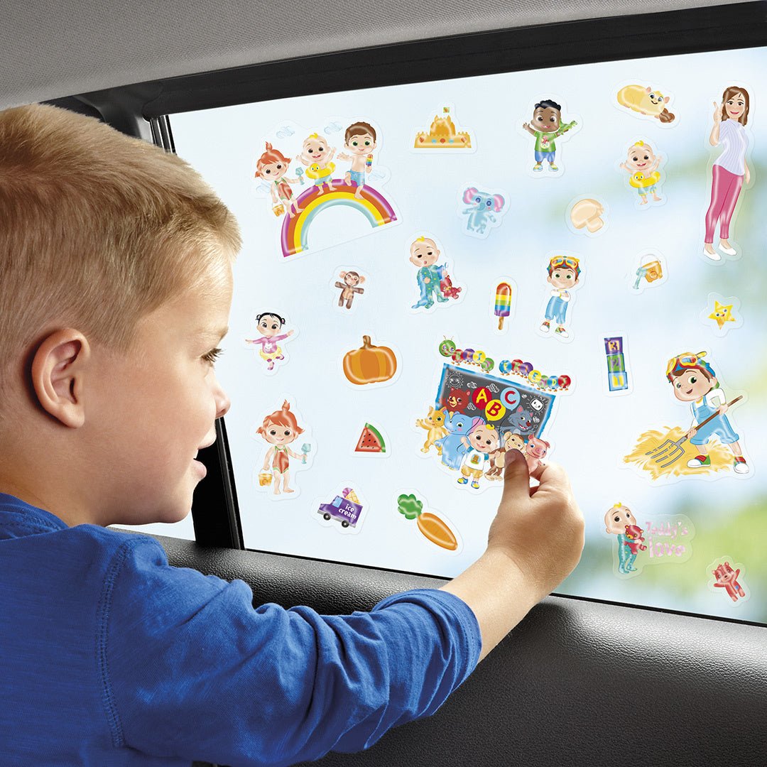 Con estas pegatinas para ventanas de CoComelon, el aburrimiento no es una opción. Úsalas en el coche, en casa, en ventanas, azulejos o espejos, o crea tus propias aventuras utilizando las pegatinas en la tarjeta adhesiva de fondo incluida. Las pegatinas para ventanas funcionan sin usar pegamento y pueden utilizarse una y otra vez sobre una superficie lisa. Este set incluye 4 hojas de adhesivos para ventanas de diferentes temas, como comida, playa, hora de dormir y colegio, y 1 fondo preimpreso para pegar.