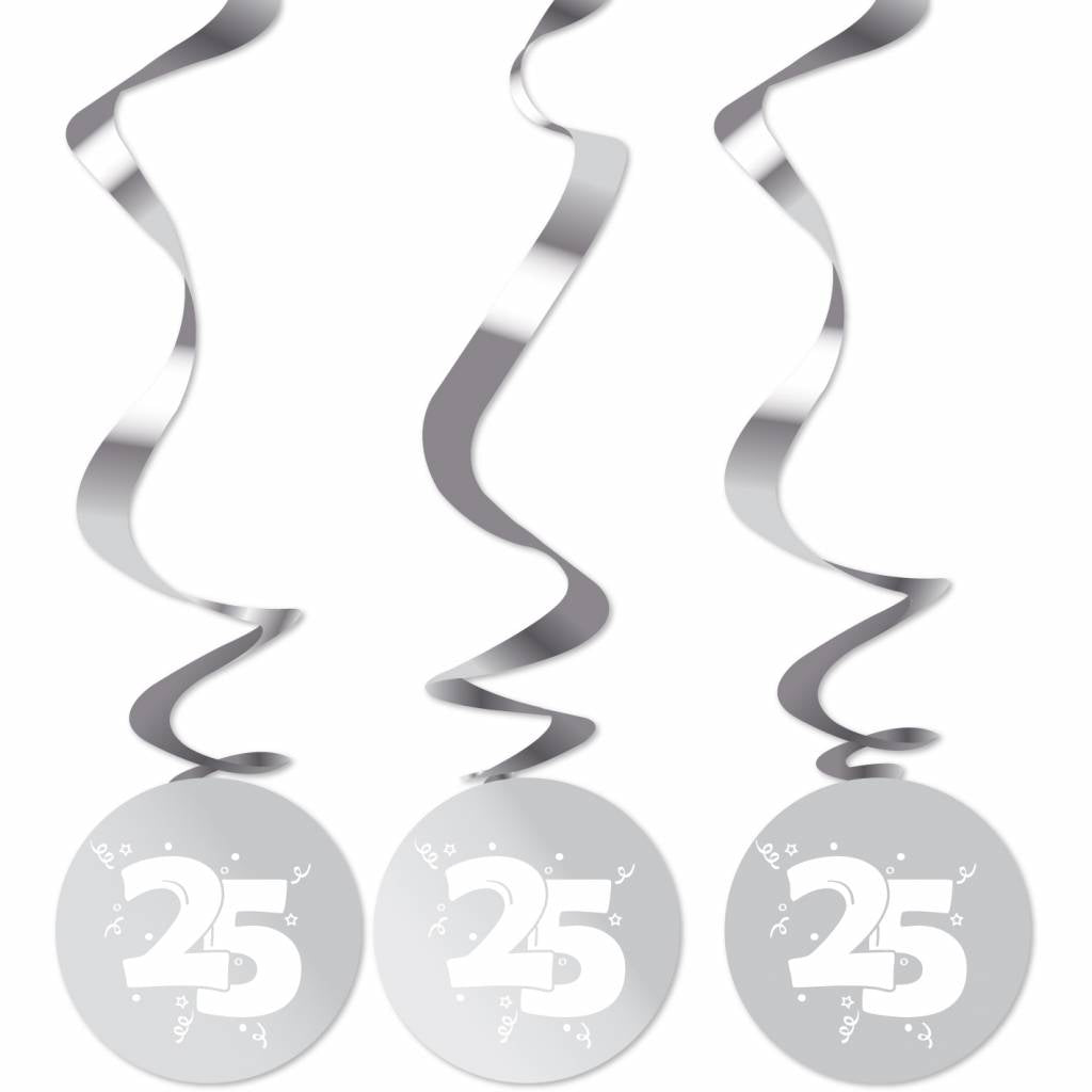 Decoración Colgante 25 Años Decoración Plateada 75cm 3pcs