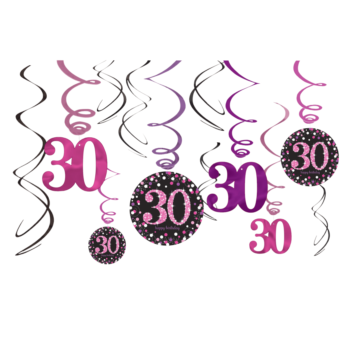 Decoración Colgante 30 Años 61cm Feliz Cumpleaños Rosa 12pcs