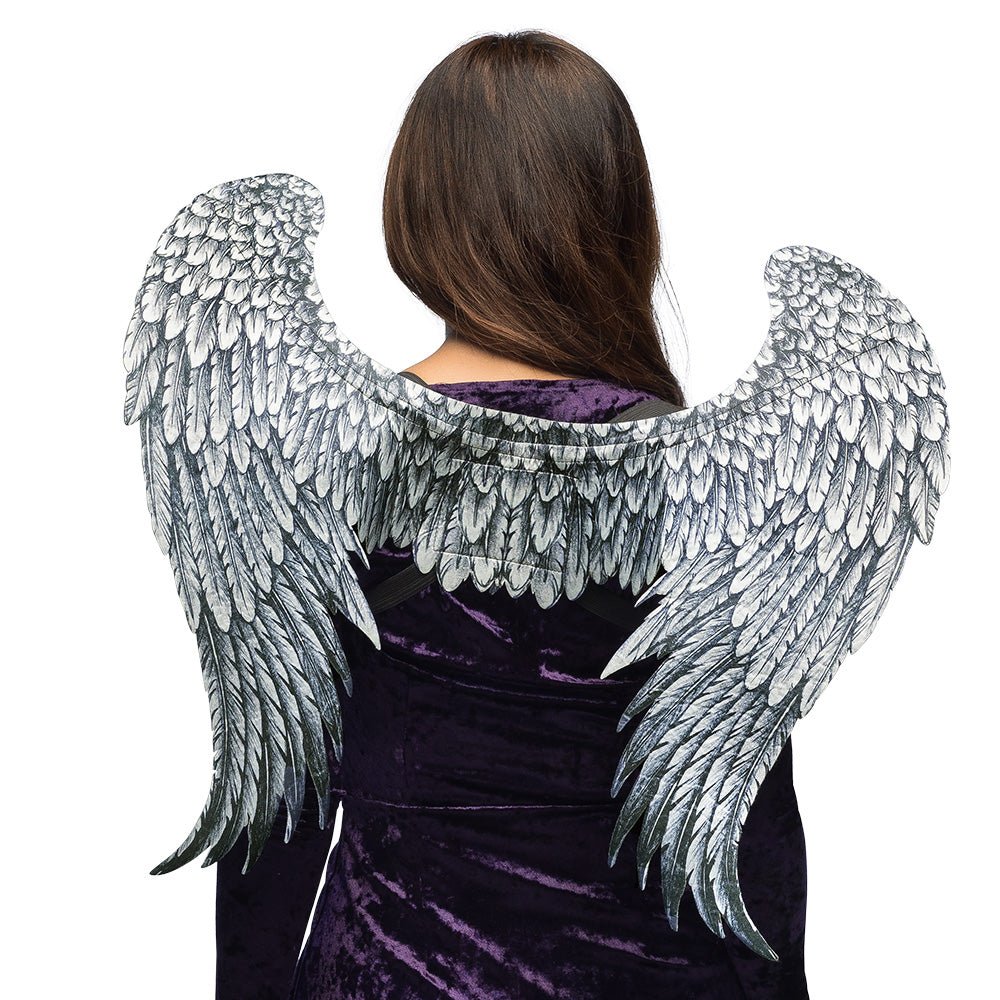 Dale un toque oscuro a tu aspecto celestial con estas preciosas alas de ángel. Estas alas oscuras están hechas de poliéster y tienen un estampado detallado que les da un aspecto auténtico. El accesorio perfecto para un disfraz de carnaval o Halloween como ángel caído o trajes de cosplay.
