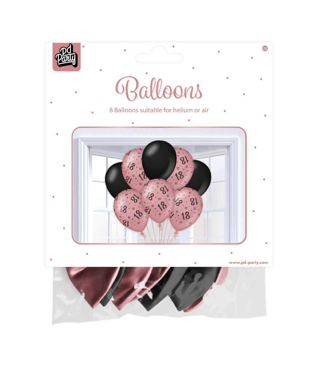 Globos 18 Años Rosa Negra 30cm 8pcs