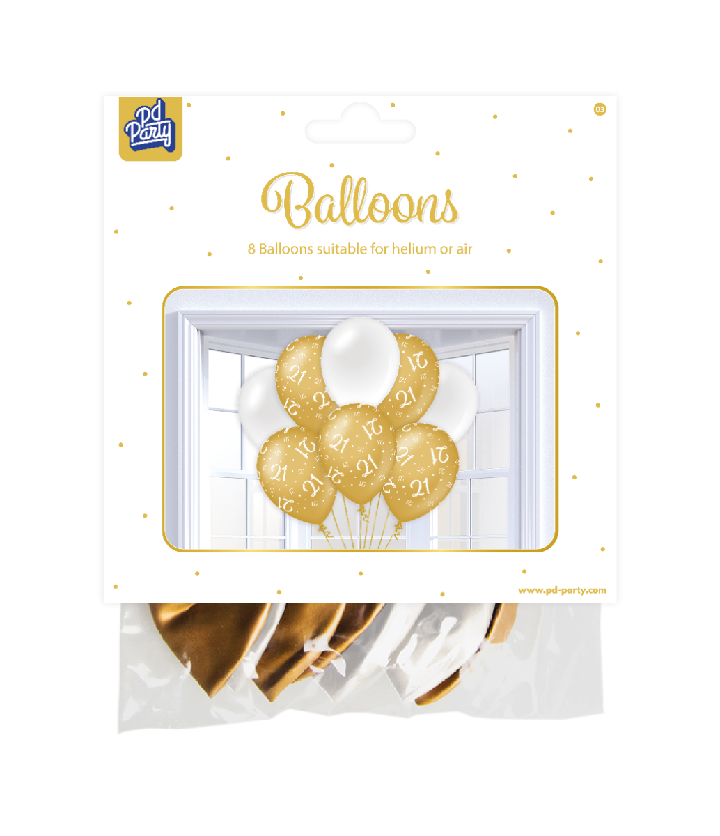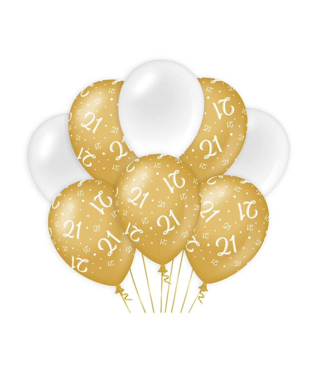 Globos 21 Años Oro Blanco 30cm 8pcs