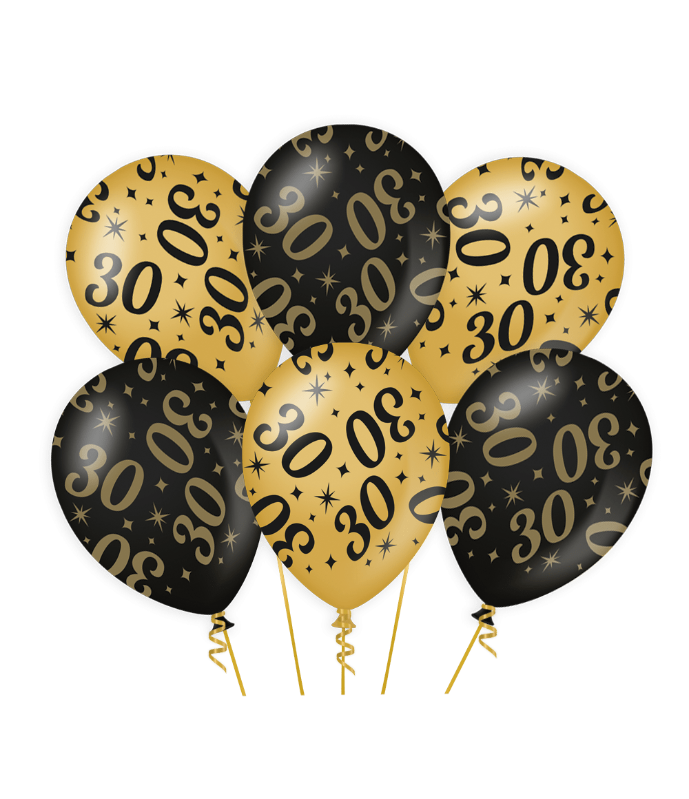 Globos 30 Años Oro Negro 30cm 6pcs