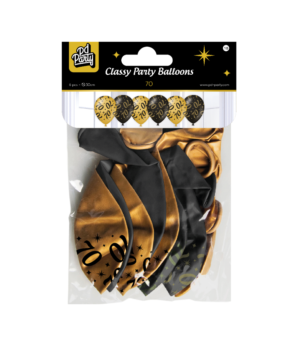 Globos 70 Años Oro Negro 30cm 6pcs