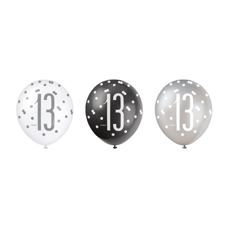 Globos 13 Años Lunares Negro 30cm 6pcs