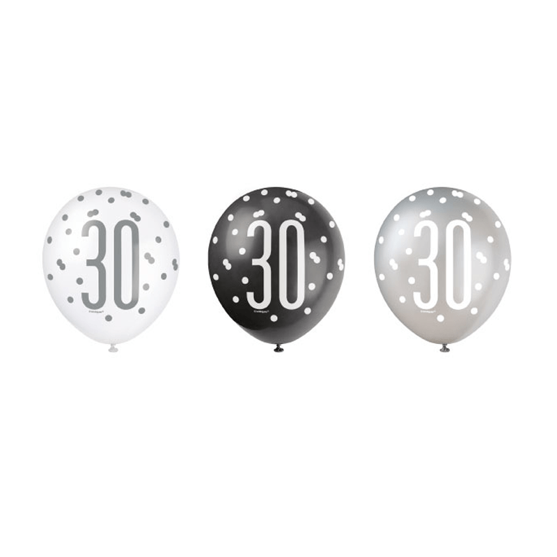 Globos 30 Años Lunares Negro 30cm 6pcs