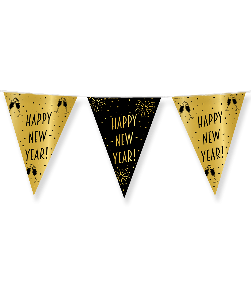 Línea de bandera Feliz Año Nuevo Oro Negro 10m