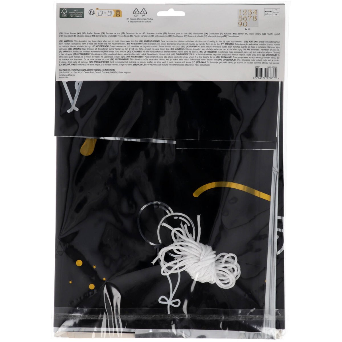 ¡Hay un cumpleaños! Pancarta de calle - Glamour brillante - 160 x 50 cm. Contenido: 1 banderola. Para utilizar, por ejemplo, en las siguientes fiestas/fiestas: Cumpleaños. Con esta pancarta callejera, todo el vecindario sabrá que es el cumpleaños de alguien. La pancarta lleva las palabras "FELIZ" y "CUMPLEAÑOS" impresas en dorado brillante rodeadas de símbolos de fiesta en plateado brillante. La edad se puede pegar entre las palabras con las pegatinas de números en oro brillante incluidas: 2 números del 0 al 9 de 14,5 cm de alto. Hay un remache metálico en las cuatro esquinas. Se incluyen 4 cordeles blancos de poliéster de 1 metro cada uno. Esta decoración colgante pertenece a la colección Shining Glam de Folat. Este artículo está hecho de plástico.