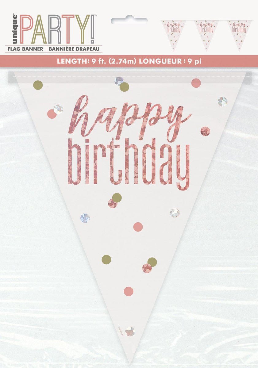 Guirnalda Feliz Cumpleaños Oro Rosa 2,74m