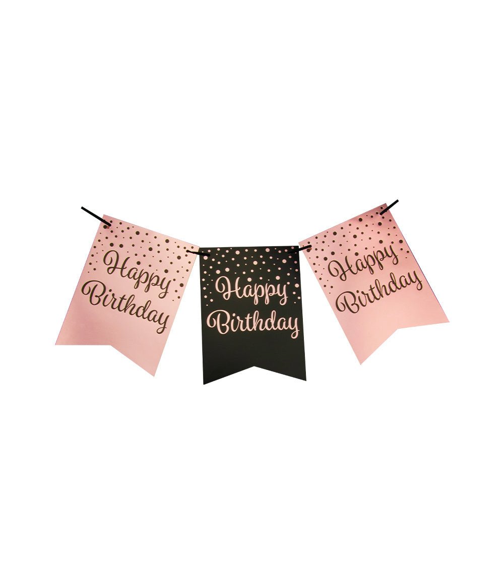 Banner Feliz Cumpleaños Rosa Negro 6m