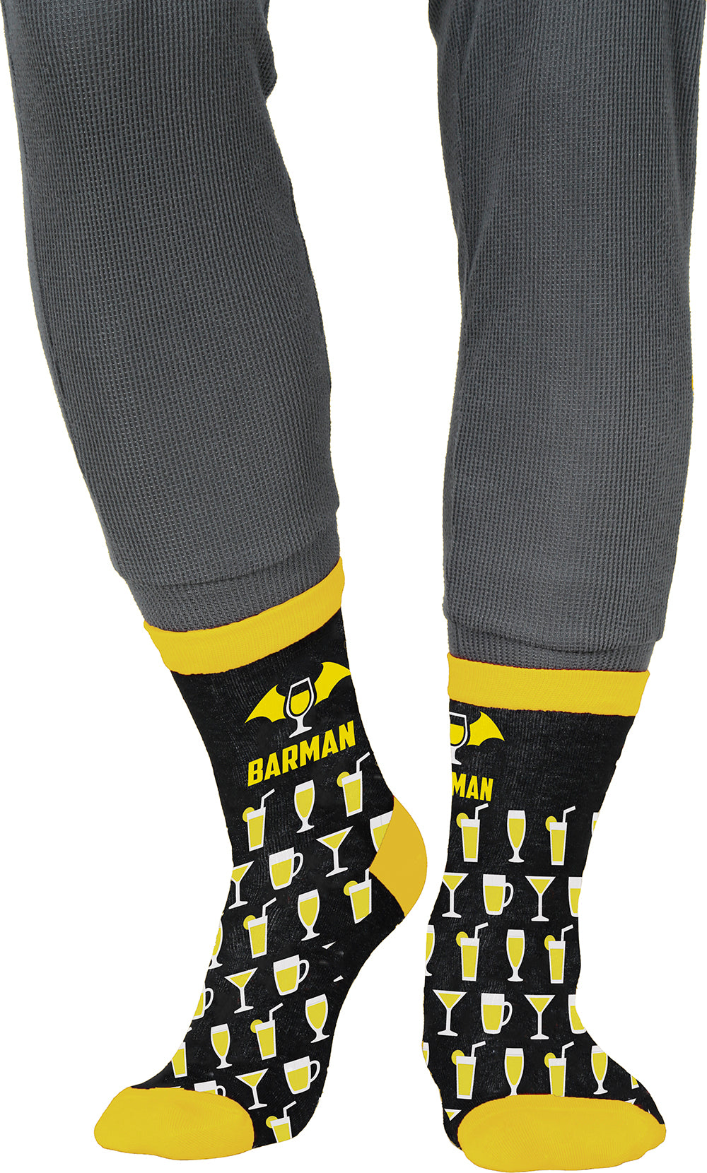 Elegantes y cómodos calcetines en negro y amarillo, perfectos para el uso diario o como bonito regalo para camareros y camareras.
