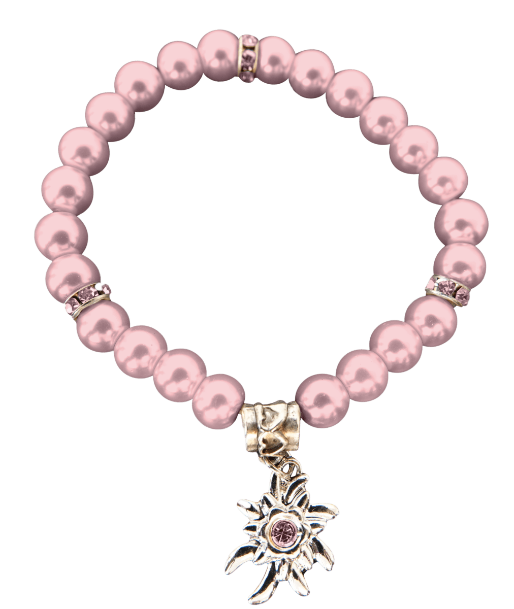 Añade un acento sutil y elegante a cualquier atuendo con esta pulsera rosa con perlas y edelweiss. Su elegante diseño hace que la pulsera sea adecuada tanto para el día a día como para ocasiones especiales.