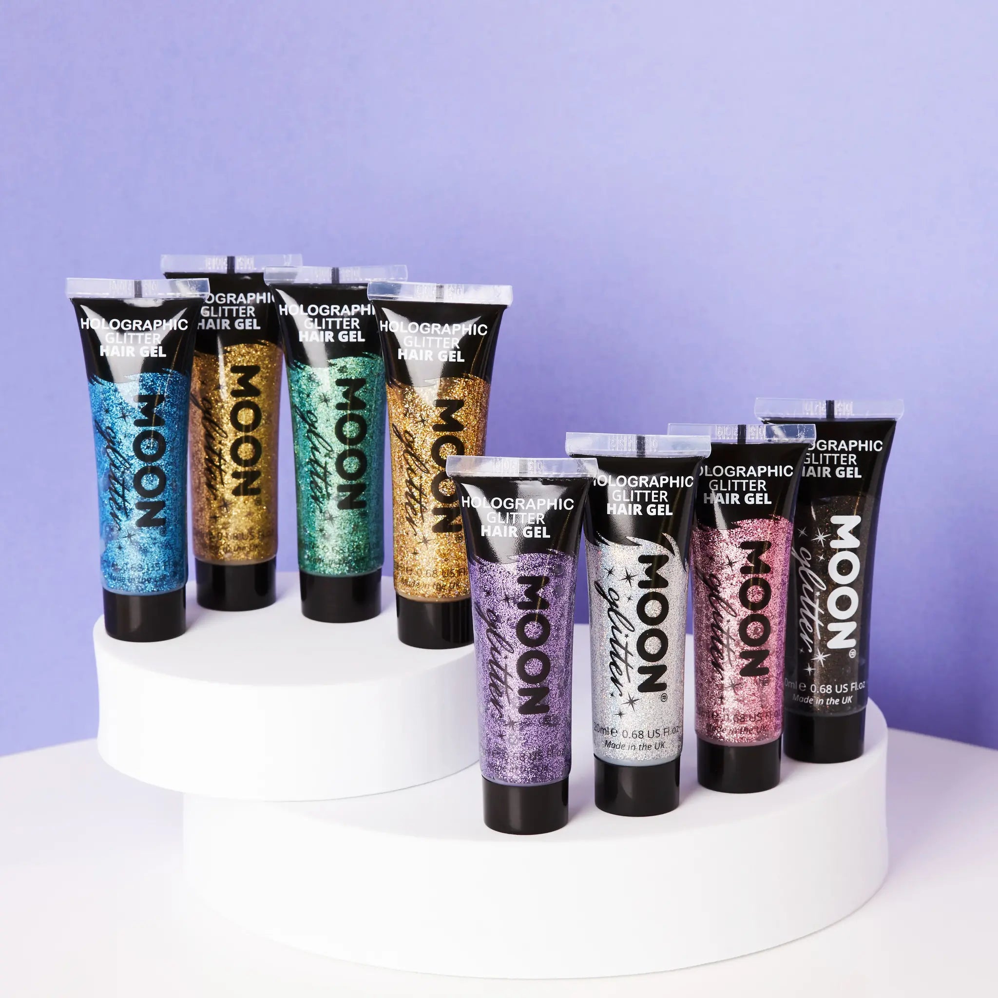 Crea increíbles peinados con purpurina con el Gel para el Cabello Holográfico Purpurina Luna. Nuestros geles proporcionan una fijación firme y están diseñados para durar toda la noche.