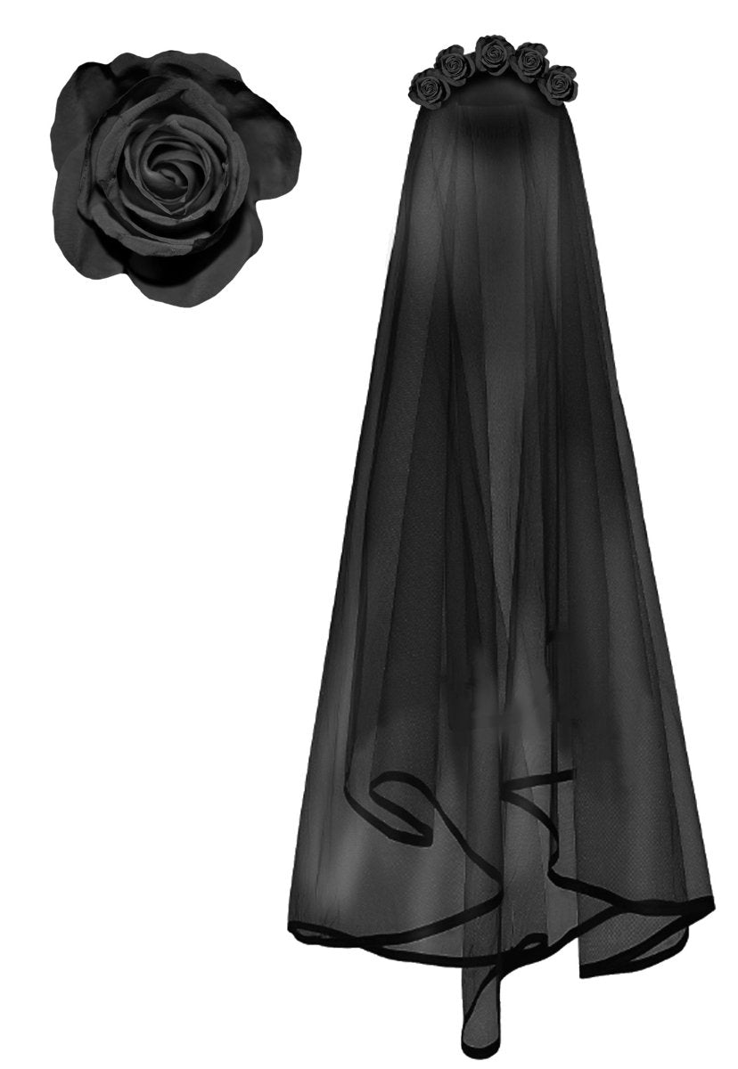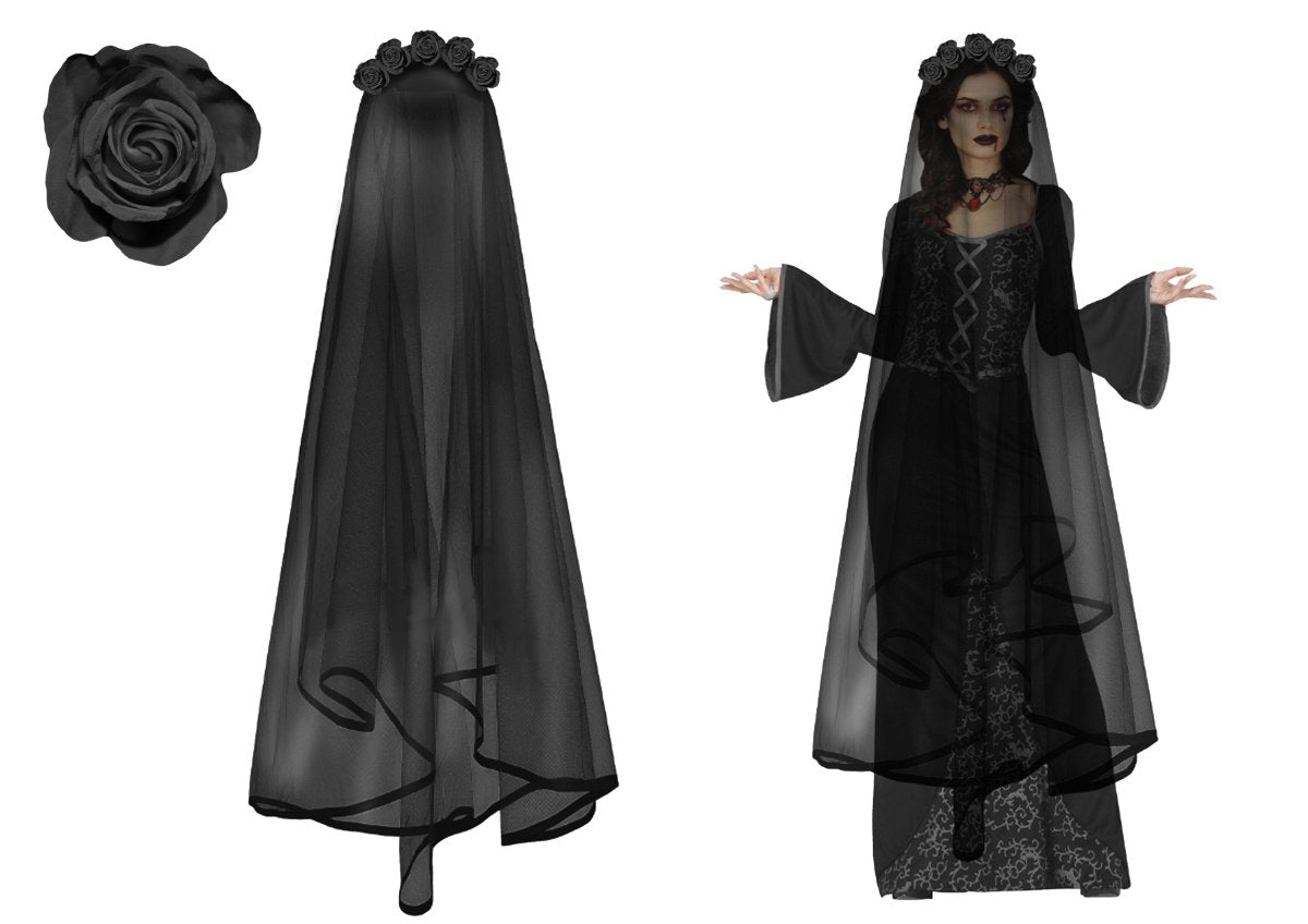 Completa tu espeluznante look de Halloween con esta elegante vincha negra con velo. Perfecta como toque final para un atuendo de bruja, vampiro o gótico.