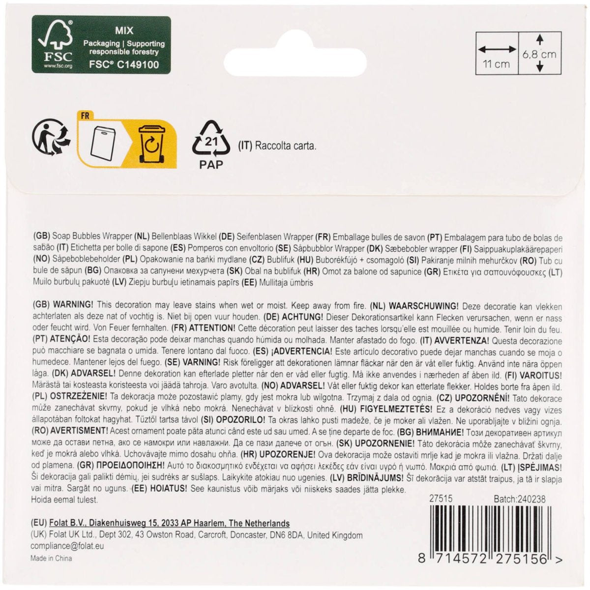 Tamaño: 11 x 6,8 cm