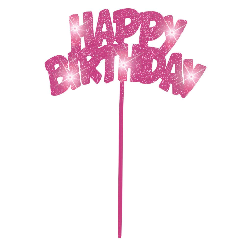 Adorno para tarta Feliz Cumpleaños Iluminación Rosa 26cm