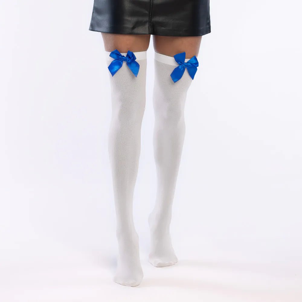 Estas medias blancas con lazos azules satinados darán a tu atuendo un toque alegre y travieso. Ideales para disfrazarte de colegiala, de personaje de cuento de hadas o si simplemente te gustan los detalles llamativos, ¡este accesorio te garantizará el protagonismo!
