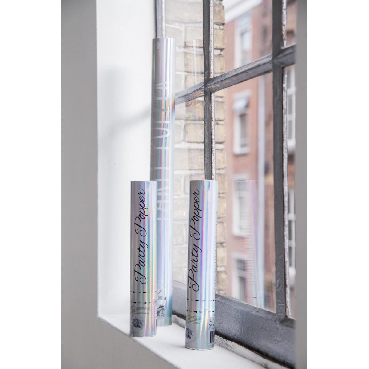 Cañón de confeti Plata - 28cm. Contenido: 1 cañón de confeti. Color: Plata. Por ejemplo, úsalo en las siguientes ocasiones de fiesta/fiesta: cumpleaños, fiesta infantil y aniversario. El artículo mide 28 cm de largo. El artículo es de plástico.