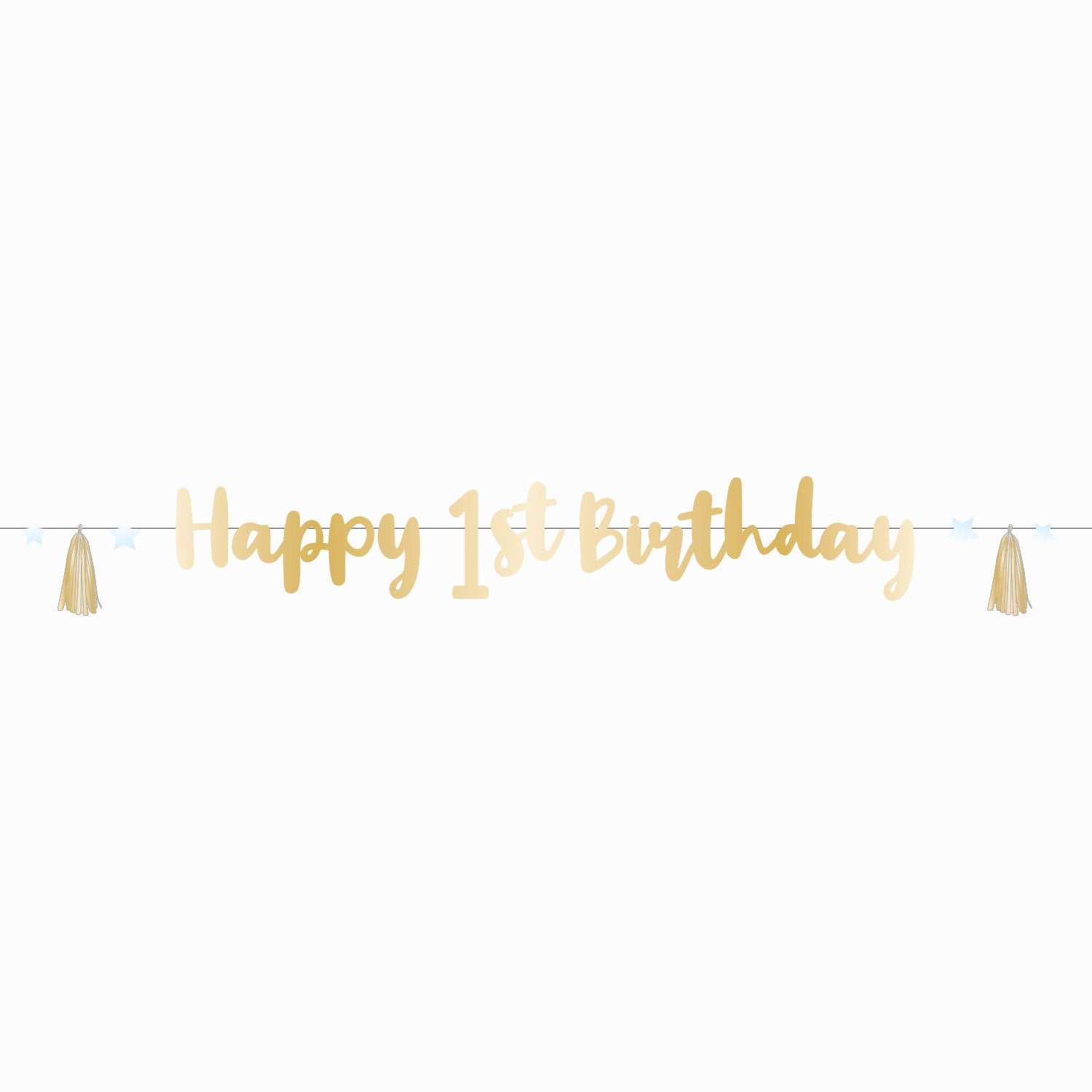 Guirnalda de Letras 1 Año Feliz Cumpleaños Azul Oro 1,8m