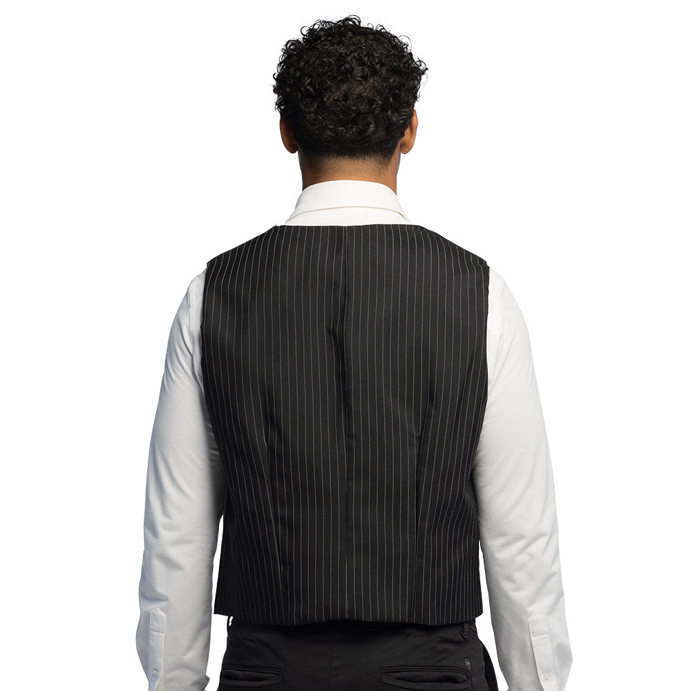 Dale instantáneamente a tu atuendo un aspecto clásico de caballero o de gánster de los años 20 con este elegante chaleco negro con rayas blancas. Perfecto para fiestas temáticas, carnaval o un disfraz de mafioso.