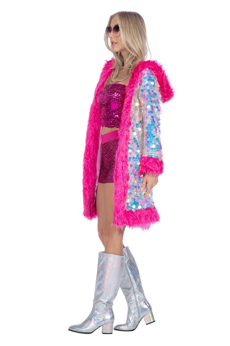 Chaqueta Holográfica Damas Larga Con Lentejuelas