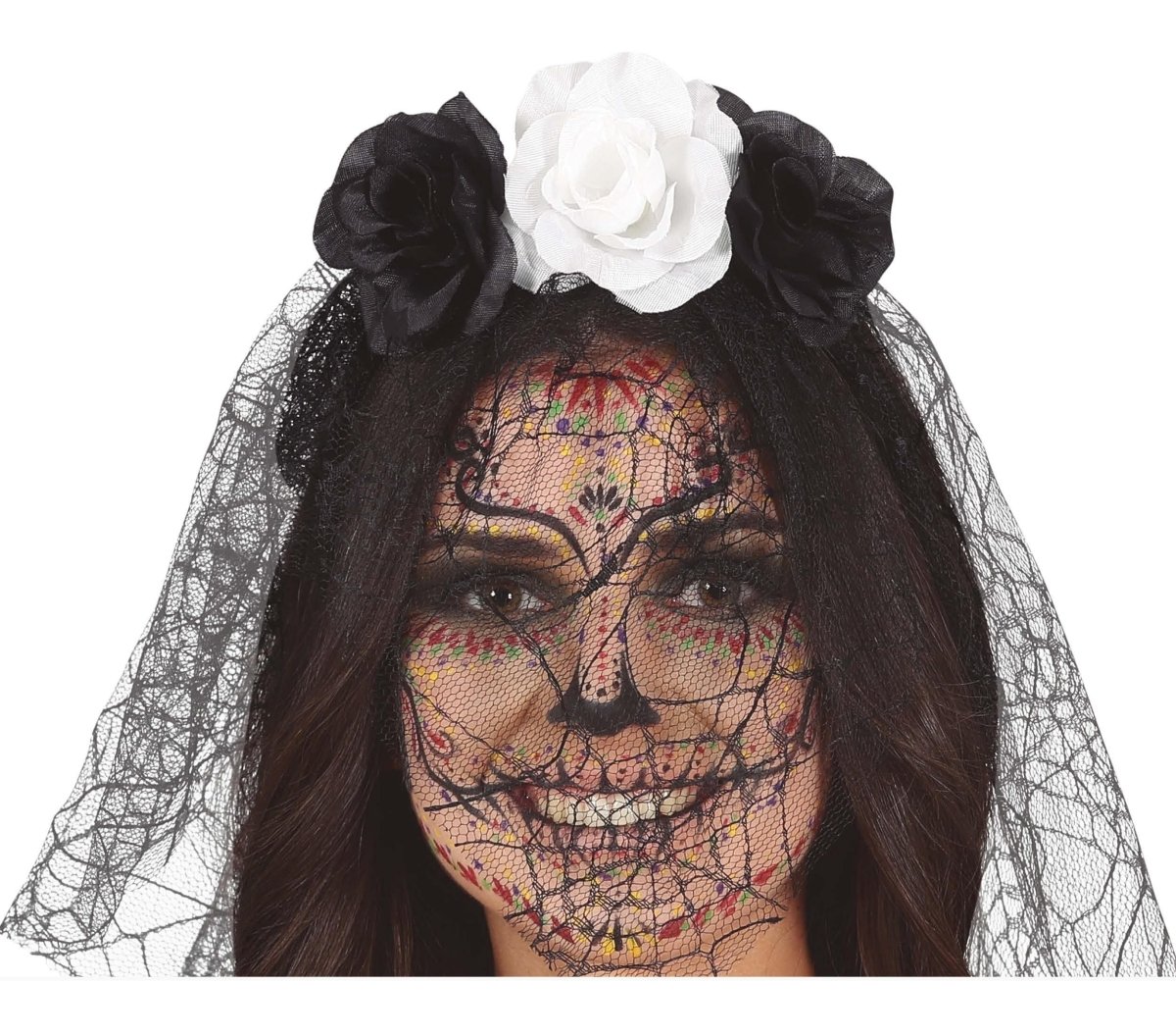 Diadema blanca y negra con velo