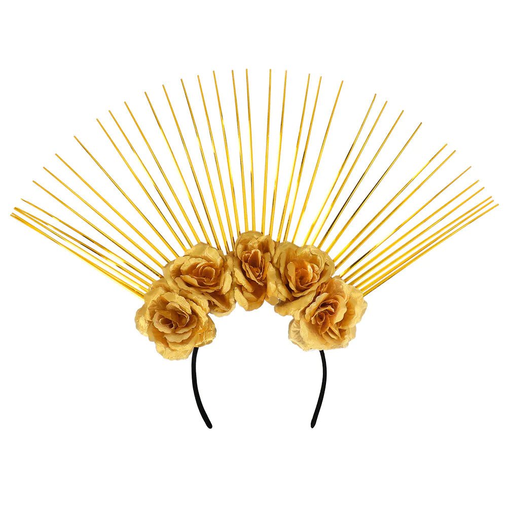 Esta preciosa corona halo Nova es una diadema única con grandes flores doradas que hará brillar un traje de fiesta o de boda y dará al look un toque boho. Además, esta preciosa diadema con corona de halo también es un accesorio único para completar un disfraz de diosa o ángel para Carnaval o un evento de cosplay.