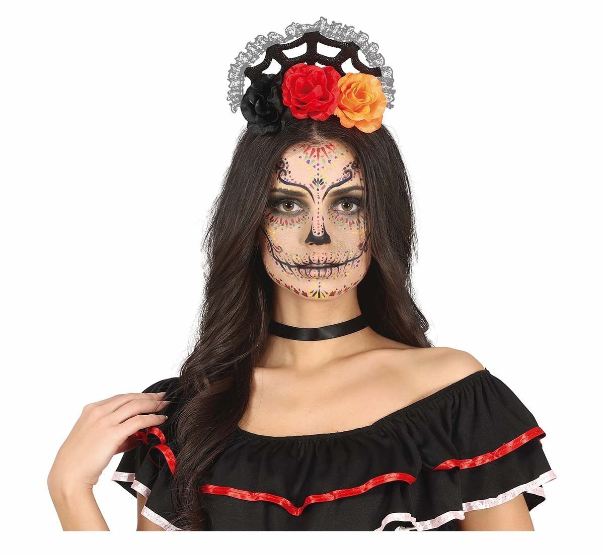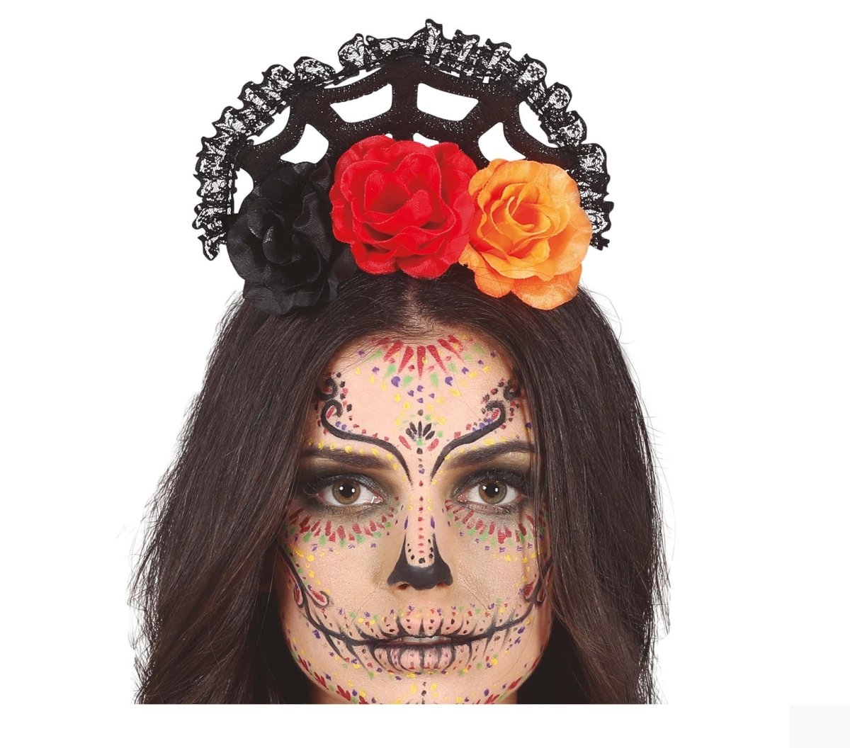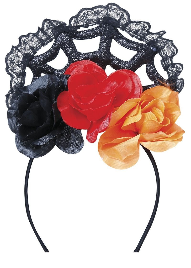 Diadema Naranja Roja Con Velo