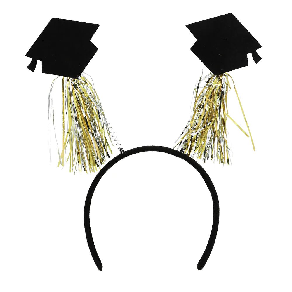 La graduación es algo de lo que sentirse orgulloso. Por eso, esta bonita diadema de graduado con diminutos birretes doctorales y borlas doradas es el accesorio perfecto para que el graduado sea el centro de atención.