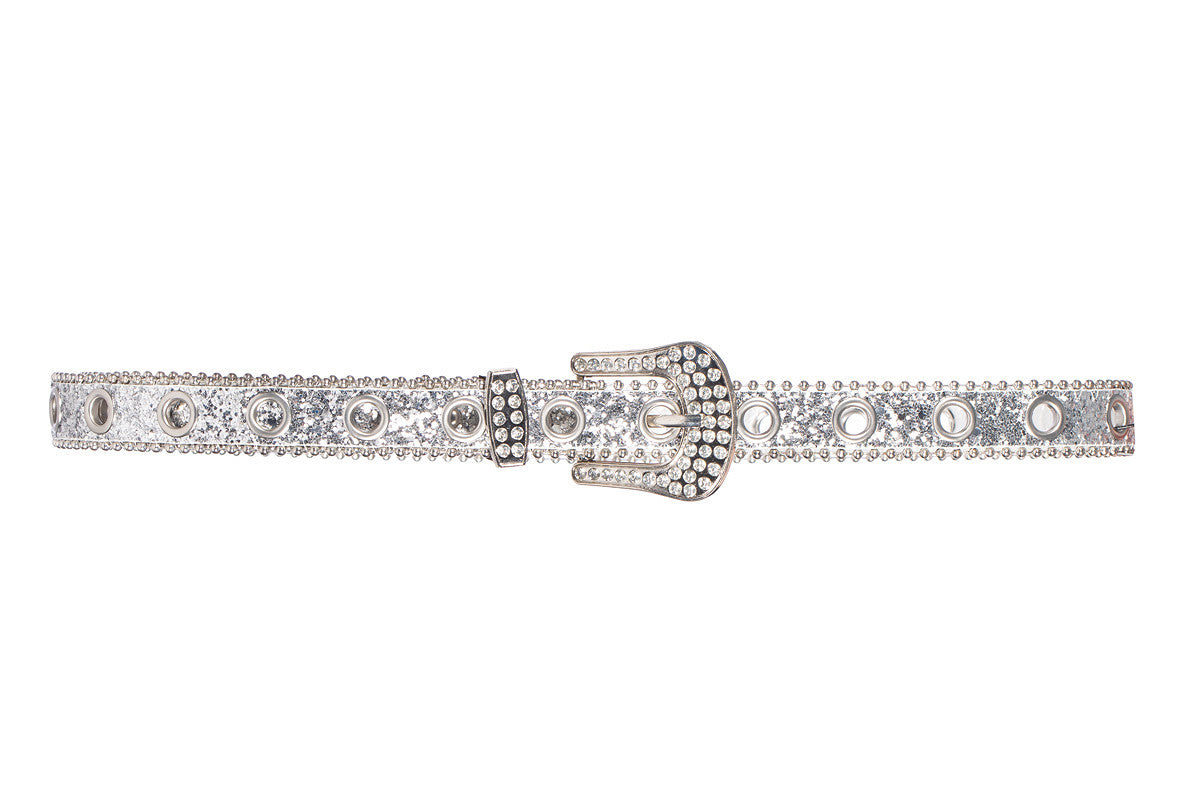 Cinturón glitter con hebilla de strass Plata