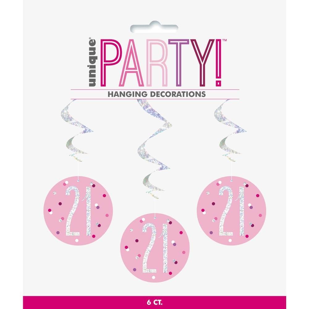 Decoración Colgante 21 Años Rosa 81cm 6pcs