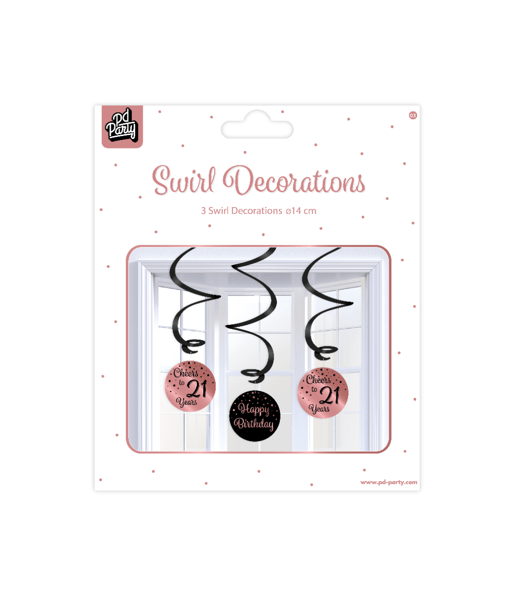 Colgante Decoración 21 Años Feliz Cumpleaños Negro Rosa 17cm 3pcs