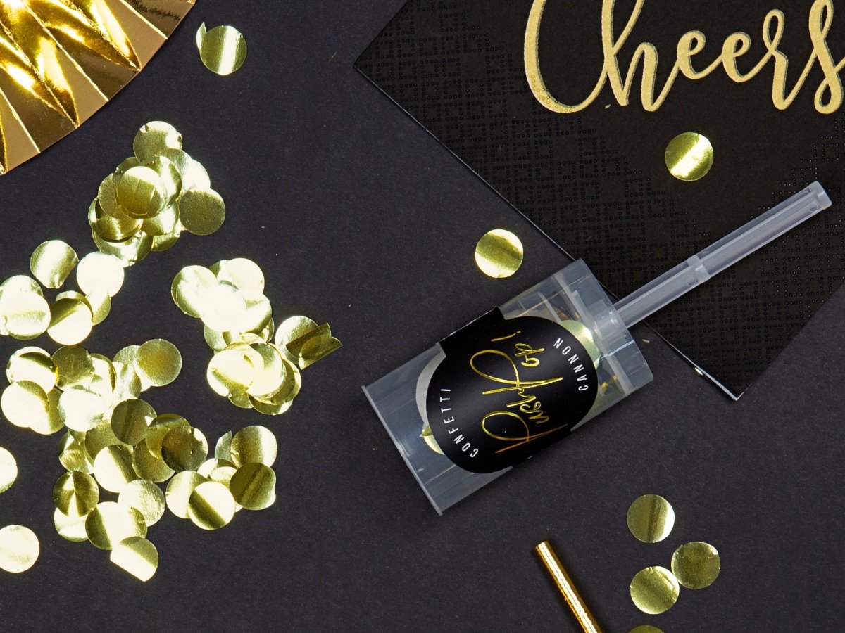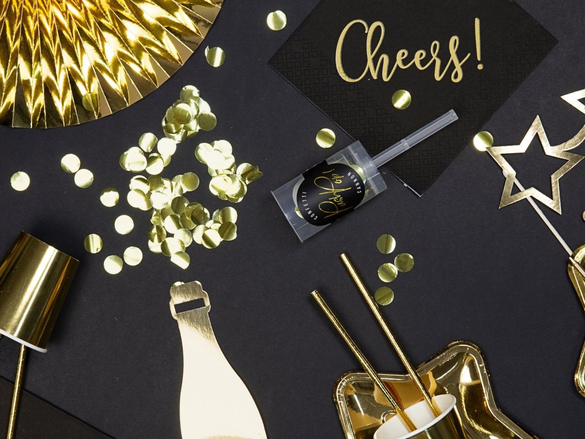 Cañón de confeti dorado 18cm