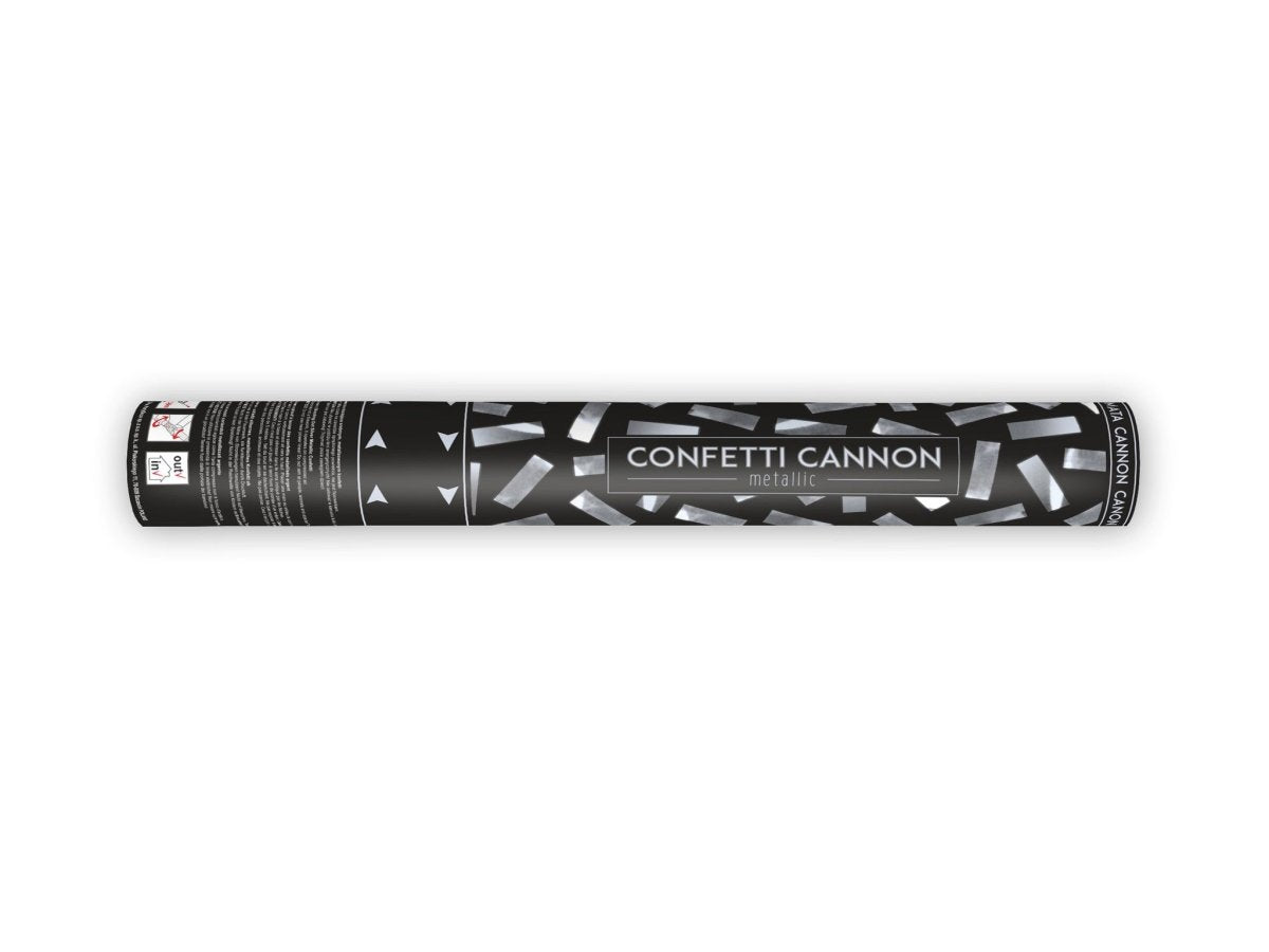 Contenido: Cañón de confeti disparado de confeti metálico, plateado, longitud 40cm.