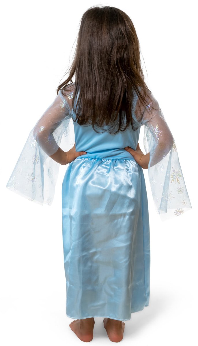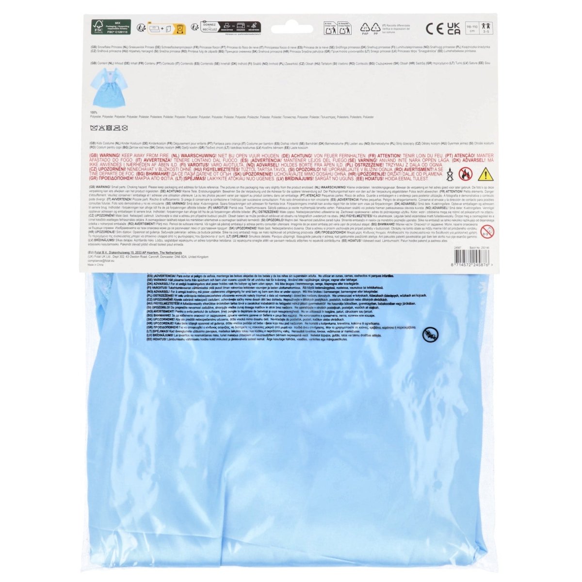 El Vestido de Princesa Copo de Nieve - Cristal es un elegante vestido de princesa azul claro que hace que cada niña brille como un grácil copo de nieve. Perfecto para fiestas infantiles, fiestas de disfraces y carnaval. El vestido se coloca fácilmente sobre la cabeza, se ajusta cómodamente y está ricamente detallado con detalles brillantes que dan vida al personaje invernal.