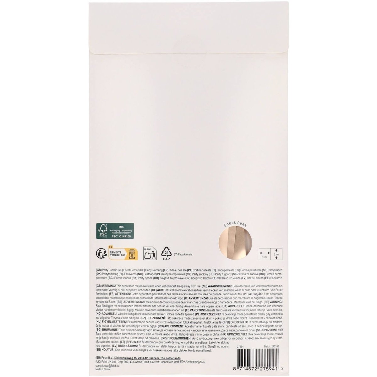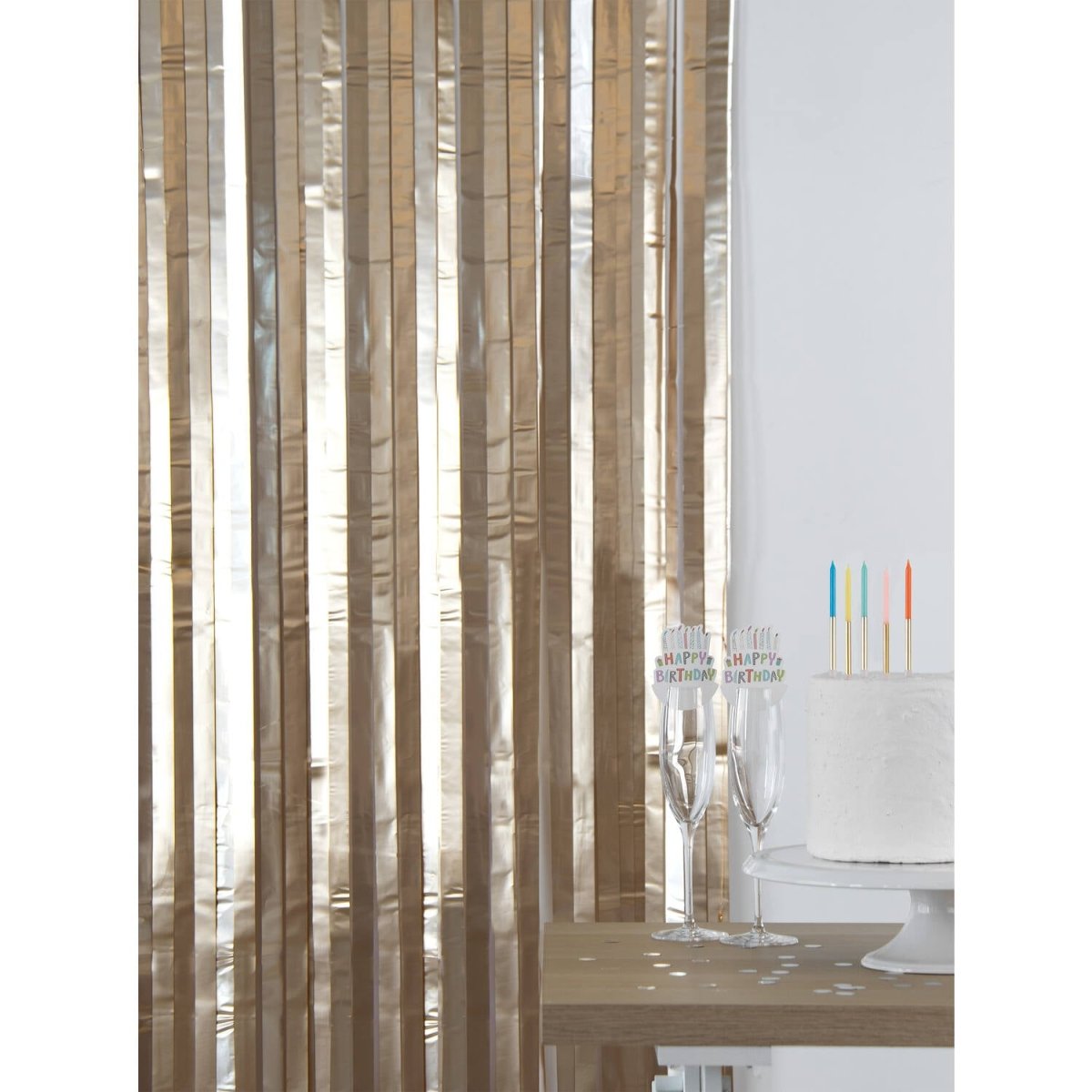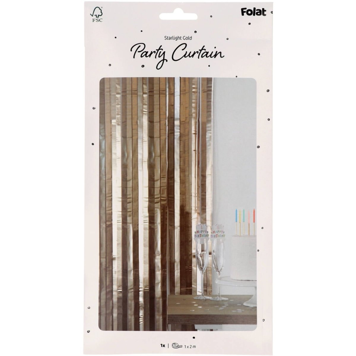 Para un ambiente chic. Cortina de fiesta - Oro mate - 1 x 2 m. Contenido: 1 cortina de fiesta. Para utilizar, por ejemplo, en las siguientes fiestas/fiestas Cumpleaños, Fiesta temática. Una cortina de fiesta chic con tiras anchas doradas de 2,5 cm de ancho. Bonita como cortina de puerta, pero también muy adecuada como telón de fondo para fotos de buen gusto. Gracias al práctico borde adhesivo, esta cortina para fiestas es fácil de colgar. Este artículo está hecho de papel de aluminio.