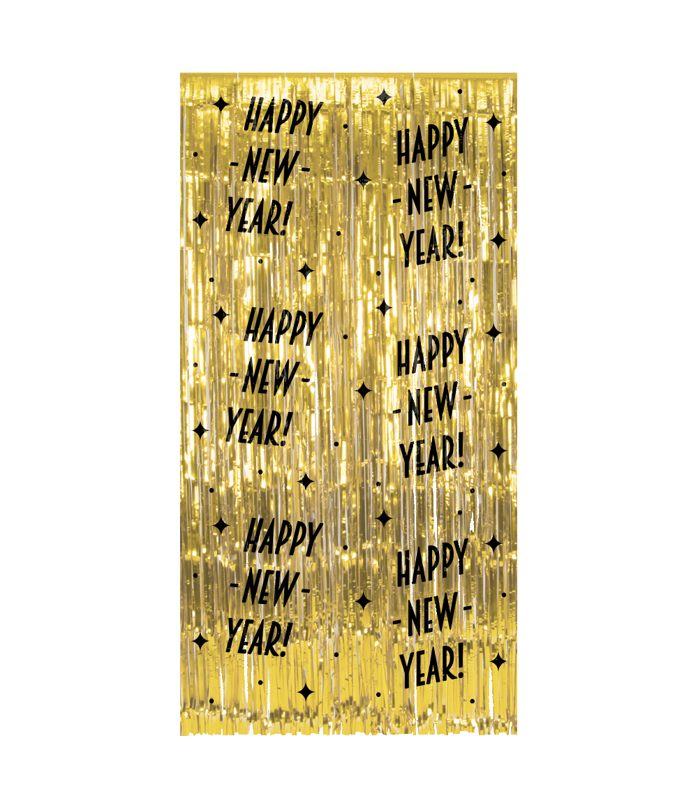 Cortina de puerta Feliz Año Nuevo Oro Negro