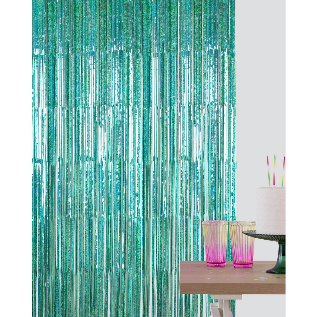 ¡Resplandeciente iridiscente! Cortina de fiesta - Turquesa chispeante - 1 x 2 m. Contenido: 1 cortina de fiesta. Para utilizar, por ejemplo, en las siguientes fiestas/fiestas Cumpleaños, Fiesta temática. Una encantadora cortina de fiesta turquesa con pequeños puntos iridiscentes. Divertida como cortina de puerta, pero también muy adecuada como telón de fondo para fotos encantadoras. Gracias al práctico borde adhesivo, esta cortina para fiestas es fácil de colgar. Esta cortina de fiesta turquesa combina perfectamente con la colección Mermaid Magic de