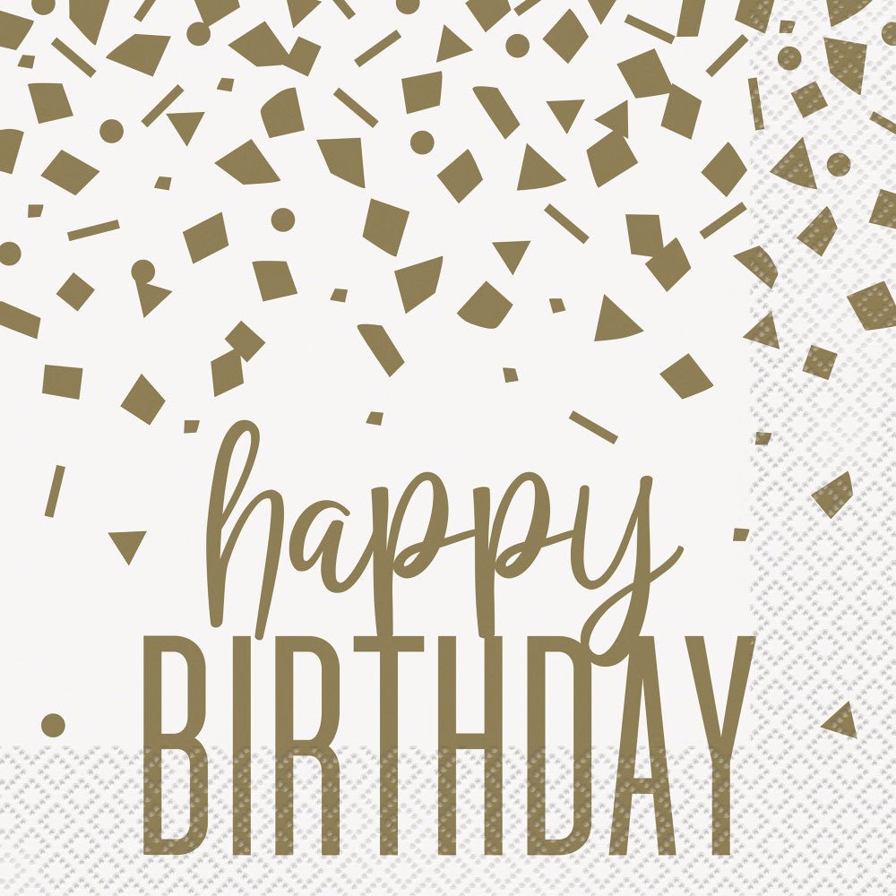 Servilletas de cumpleaños Happy Birthday Gold Confetti 16pcs