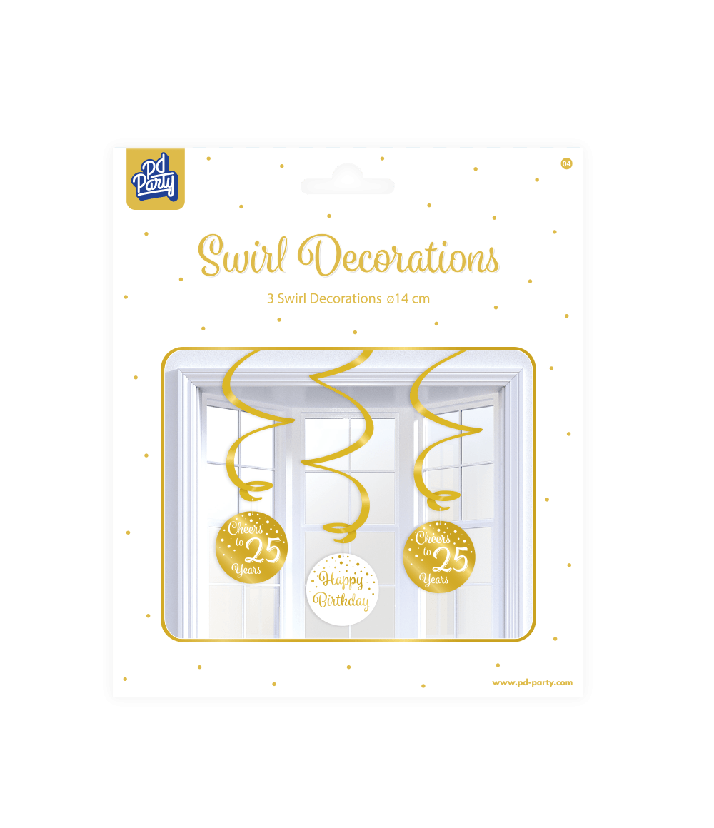 Decoración colgante 25 Años Feliz Cumpleaños 17cm 3pcs