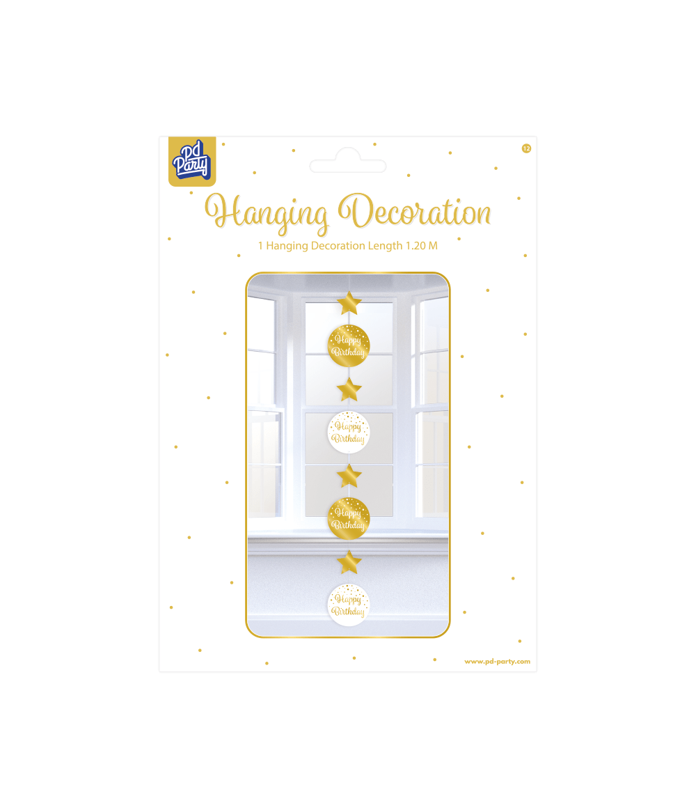 Decoración colgante Feliz Cumpleaños Oro Blanco 20,5cm
