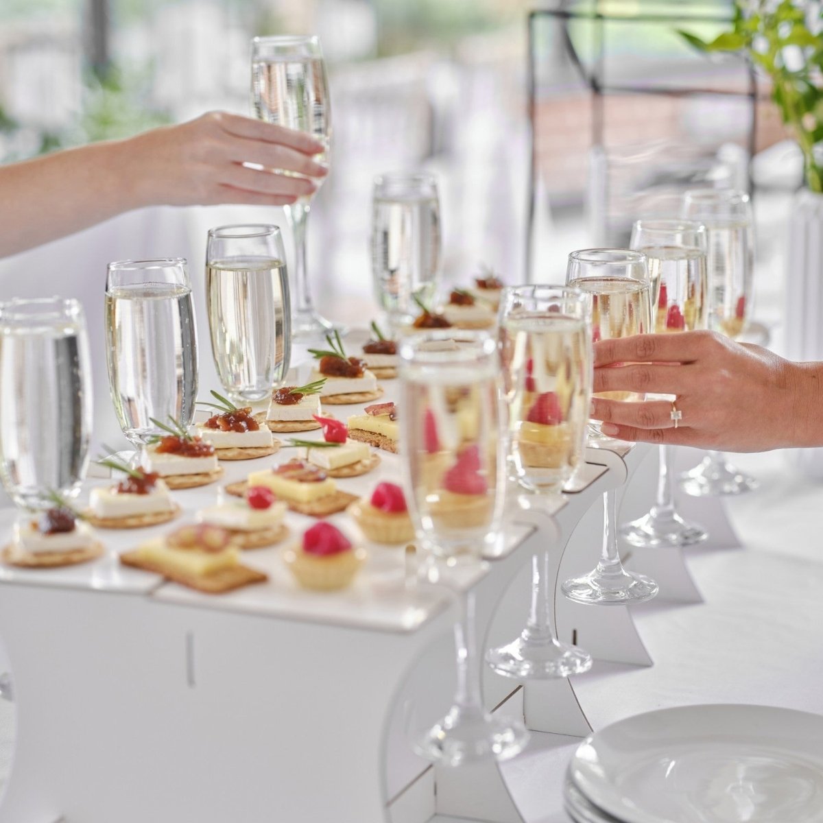 Demuestra tu efervescencia y un surtido de deliciosos tentempiés con este impresionante soporte combinado para bebidas y tabla para picar que encantará a tus invitados